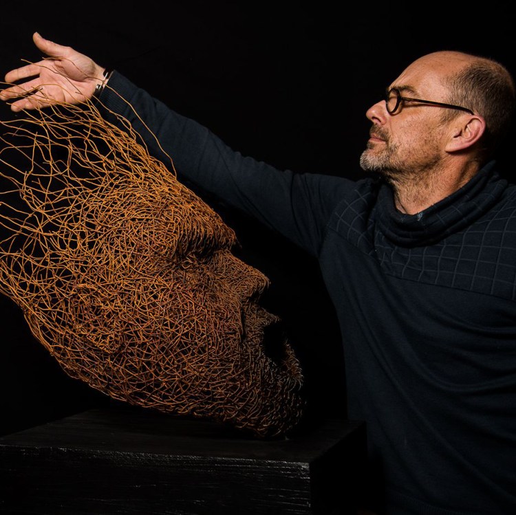 S’intéressant initialement à la peinture, son travail a évolué au fil des années, et c’est aujourd’hui la sculpture qui prédomine dans son atelier malouin. Basées sur un travail de tissage du fil de fer, ses sculptures alternent densité et légèreté.